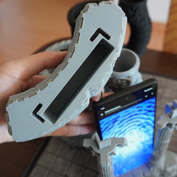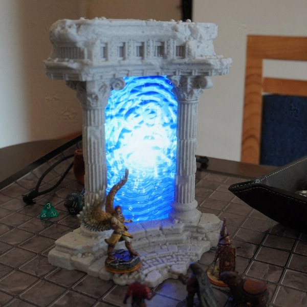 Este portal impreso en 3D permite que pongas a un celular dentro para generar un efecto de portal en tu mesa de rol.